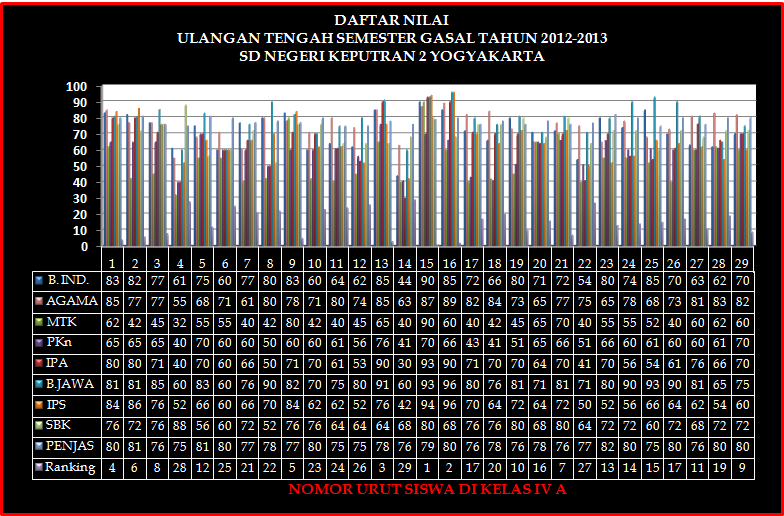 NILAI SEBELUMNYA : NILAI UTS KELAS IV A