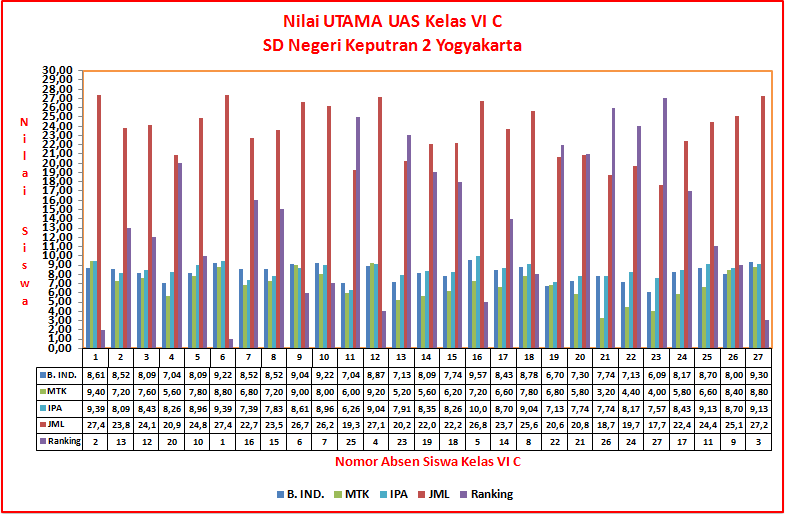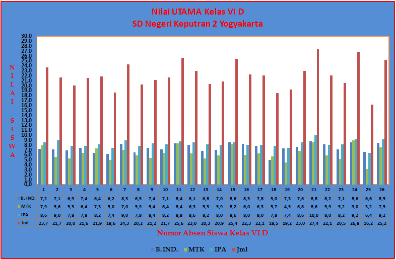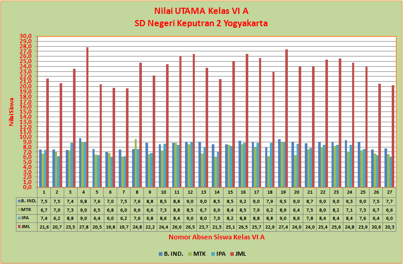 Grafik Nilai UTAMA UAS Sem. Ganjil SD Negeri Keputran 2 Yogyakarta