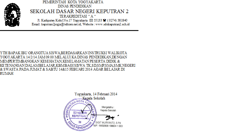 Jl. Kadipaten Kidul No.17 Yogyakarta 55133